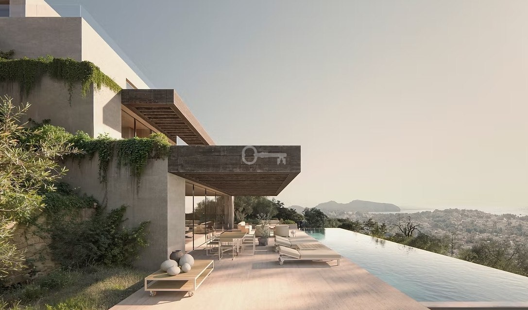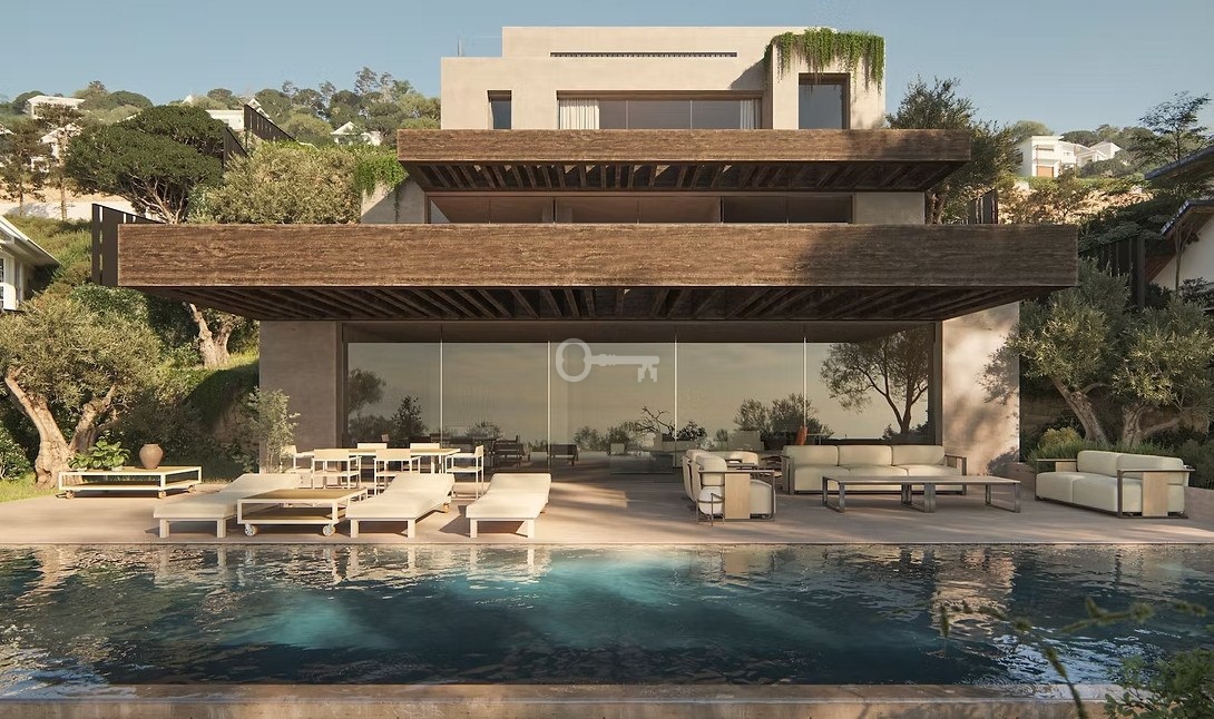 Ta wyjątkowa willa została zaprojektowana z myślą o pełnej harmonii z otaczającym krajobrazem. Jej architektura, oparta na betonowych platformach i drewnianych pergolach, naturalnie wpisuje się w ukształtowanie terenu, tworząc otwarte, przestronne wnętrza wypełnione światłem.