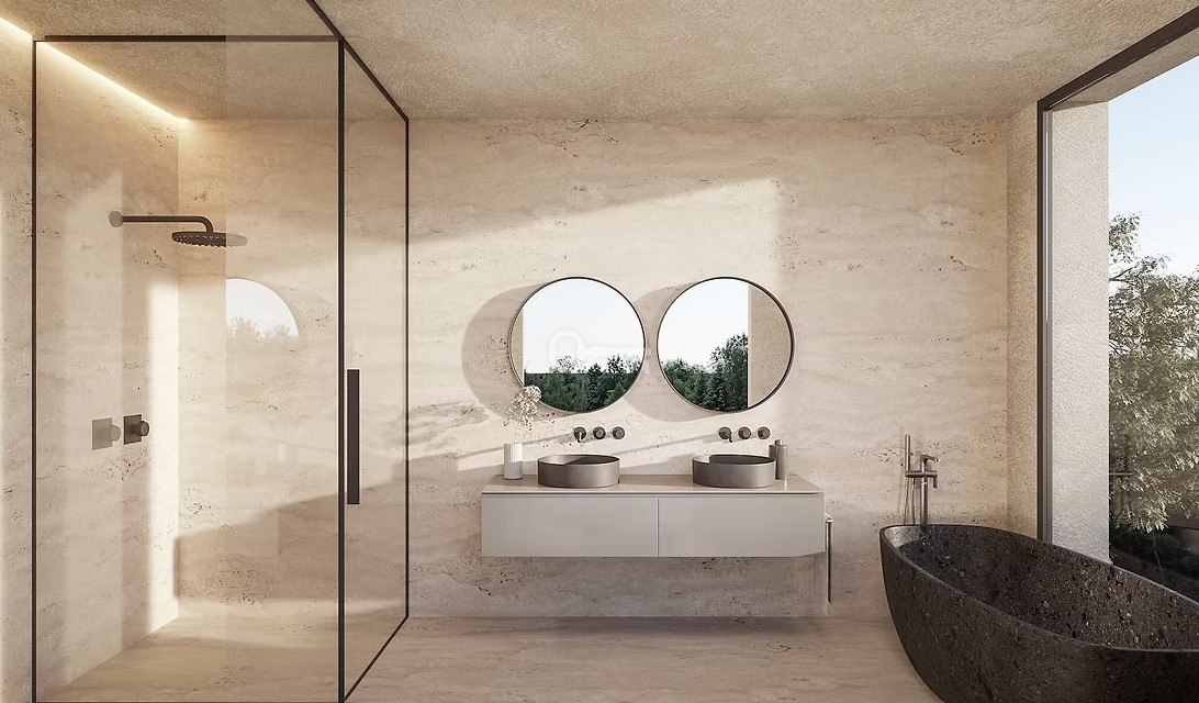 W całym domu zastosowano naturalne materiały – kamień, drewno i szkło – które nadają wnętrzom ciepła, elegancji i ponadczasowego charakteru. Połączenie funkcjonalności, jakości oraz kontaktu z naturą sprawia, że willa idealnie oddaje śródziemnomorski styl życia.