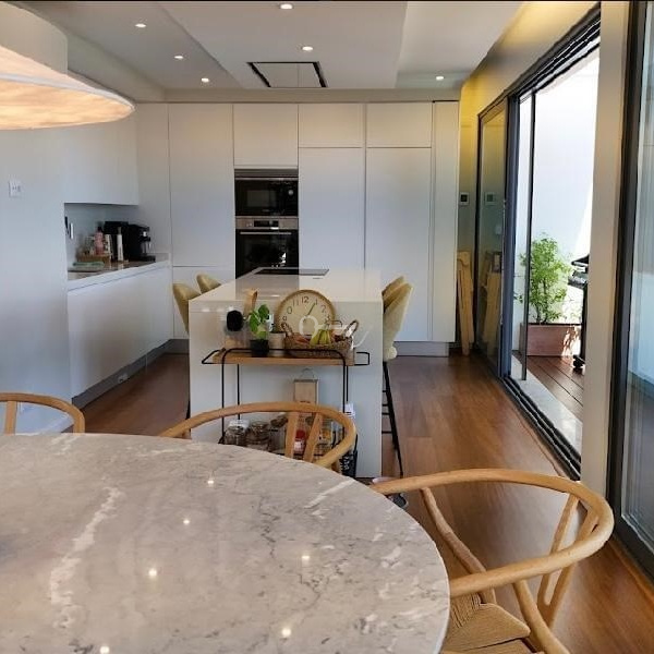 Na parterze hall prowadzi do dużego salonu o powierzchni 57,25 m2, kuchni na otwartej przestrzeni, z bezpośrednim wyjściem na zewnątrz, gdzie znajduje się basen. Na tym samym piętrze znajduje się apartament z bezpośrednim dostępem do ogrodu i łazienka socjalna. Na pierwszym piętrze znajdują się jeszcze dwa apartamenty, w tym jeden główny z garderobą. Sypialnie mają dostęp do dużego balkonu, a strefa komunikacyjna ma dostęp do tarasu.