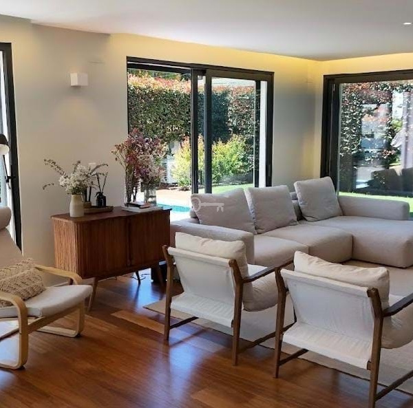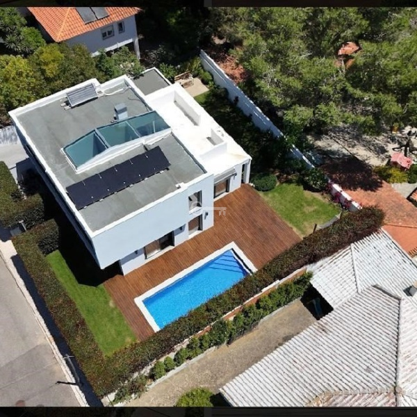 Odkryj nowoczesny styl życia w Birre, Cascais. Ta willa, położona na działce o powierzchni 600 m2, znajduje się przy cichej ulicy, z łatwym dostępem pieszo do szerokiej oferty usług, w mgnieniu oka dociera do centrum Cascais, a także do autostrady A5 i plaży Guincho. Architekci António Vidigal i Patrícia Gallo zaprojektowali nowoczesny i bardzo jasny dom. Wszystkie sypialnie są z łazienkami, co pozwala cieszyć się luksusem przestrzeni i prywatności w każdej starannie zaprojektowanej sypialni, z nowoczesnymi prywatnymi łazienkami dla niezrównanej wygody.