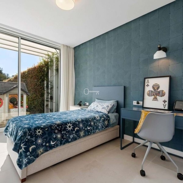 Na poziomie ogrodu cztery przestronne sypialnie otwierają się bezpośrednio na basen i tereny zielone, tworząc prywatne miejsce dla rodziny i gości. Eleganckie łazienki z kabinami prysznicowymi i wyrafinowanymi wykończeniami zwiększają poczucie komfortu i stylu, a połączenie z tarasem przy basenie sprawia, że to piętro jest idealne do relaksującego życia w kurorcie.