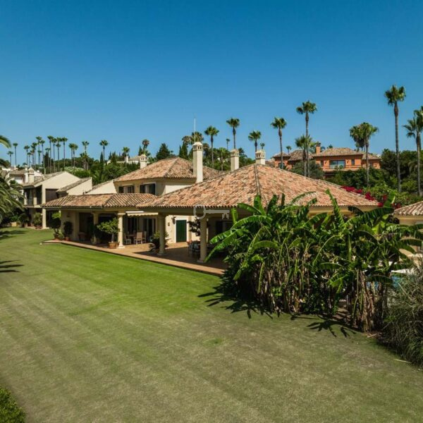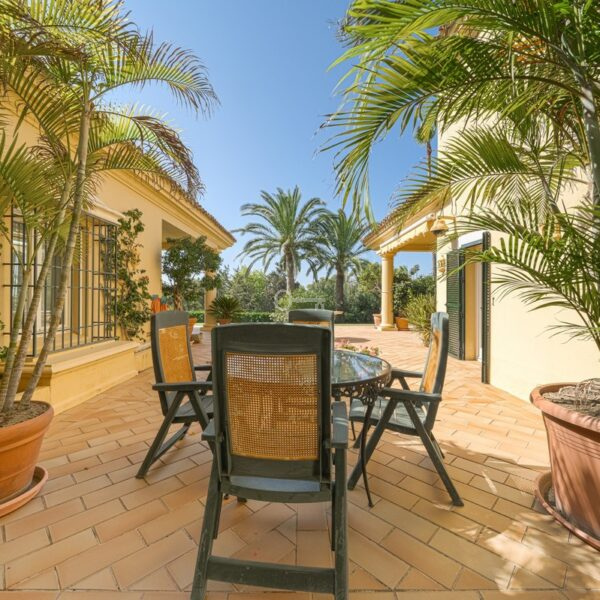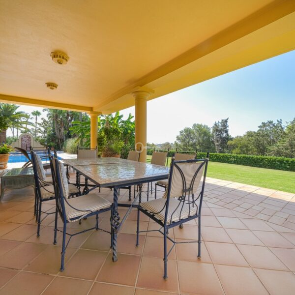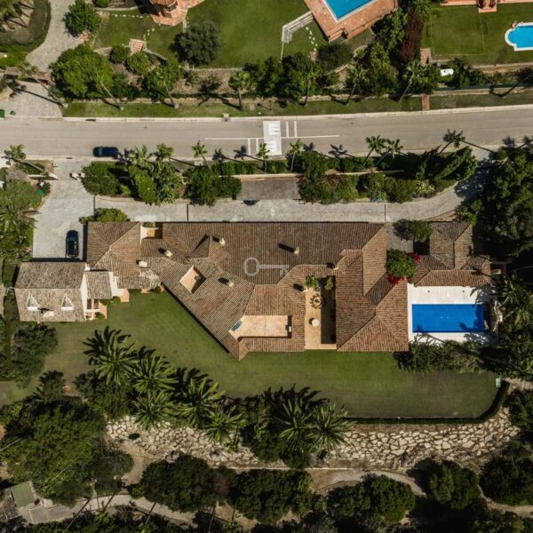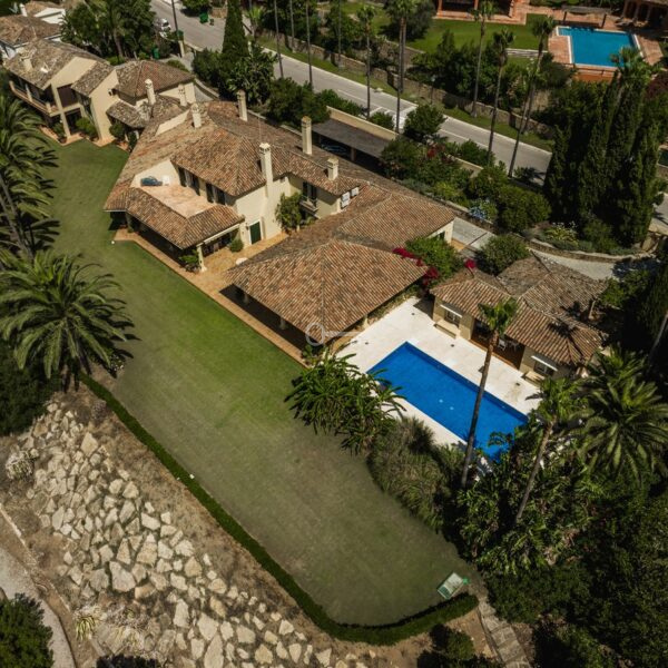 Położona w Sotogrande, w pobliżu plaży i wszystkich udogodnień, jest rozmieszczona na 2 poziomach i obejmuje na głównym piętrze: wejście, szatnię, toaletę dla gości oraz salę telewizyjną z kominkiem i dużymi oknami zapewniającymi naturalne światło i harmonię z otaczającym ogrodem. Istnieją 2 sypialnie z dostępem do otwartych i zadaszonych tarasów, salon z kominkiem i jadalnia, obie z dostępem do głównej werandy, ogrodu i basenu. Znajduje się tu również pralnia, łazienka z prysznicem, wyposażona kuchnia ze spiżarnią połączona z kolejną werandą z grillem, patio serwisowe, pomieszczenie gospodarcze, podwójny garaż, piwniczka na wino i sala bilardowa z kominkiem.