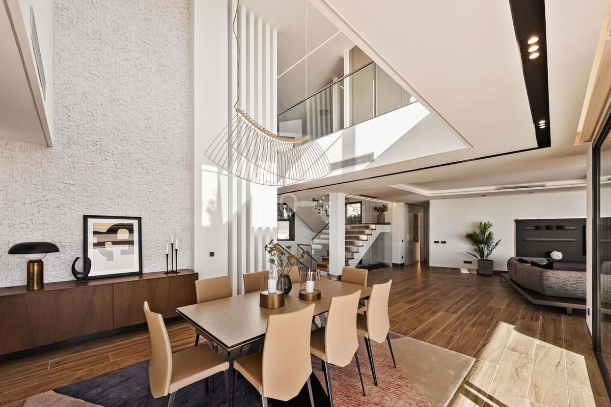 Położony na działce o powierzchni 2.267 m², 3-poziomowy dom o powierzchni 741 m² szczyci się modną współczesną architekturą i gustownie urządzonym nowoczesnym wnętrzem, prostym, eleganckim i wykwintnym. Zaprojektowany z czystymi, delikatnymi liniami, neutralnymi kolorami i dużymi oknami, łączy nowoczesność z idyllicznym środowiskiem naturalnym. Z pokoi, prywatnych tarasów i solarium, ogrodów i basenu można podziwiać zapierające dech w piersiach panoramiczne widoki na morze, przystań, zielone wzgórza, pole golfowe i otoczenie miejskie. Ten luksusowy dom o wyjątkowych cechach zapewnia komfort i wygodę. Obejmuje on 4 sypialnie z łazienkami, kolejną sypialnię dla gości z oddzielną nowoczesną elegancką łazienką i trzy toalety. Przestronne jadalnie i salony prowadzące na tarasy są idealne do przyjmowania członków rodziny i gości. Otwarta, w pełni wyposażona kuchnia w minimalistycznym stylu z najwyższej jakości sprzętem AGD, piwnica, prywatny garaż, schowek, pomieszczenia gospodarcze i pralnia zaspokoją wszystkie praktyczne potrzeby. Nieruchomość posiada również siłownię z łazienką, jacuzzi, sauną i prysznicem parowym. Rozrywka na świeżym powietrzu jest łatwa dzięki przyjemnemu grillowi i jadalniom na świeżym powietrzu, a zadaszone i odkryte tarasy oferują wybór atmosfery. Ten dom ma również apartament dla gości, dzięki czemu idealnie nadaje się do przyjmowania gości lub personelu.