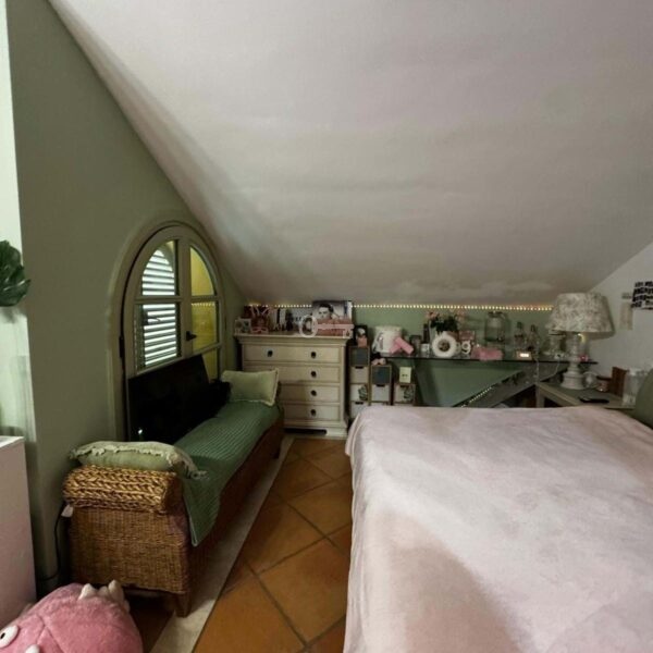 The residence is thoughtfully arranged over several levels, providing four spacious bedrooms and four bathrooms, two of which are en-suite, along with an additional guest toilet. The interior is beautifully appointed, featuring air conditioning, underfloor heating throughout, and gas heating to ensure year-round comfort. Marble floors add an elegant touch, while the fully fitted kitchen and included furnishings offer a move-in-ready experience. A charming fireplace in the main living area creates a warm and inviting atmosphere, ideal for relaxing or entertaining guests.