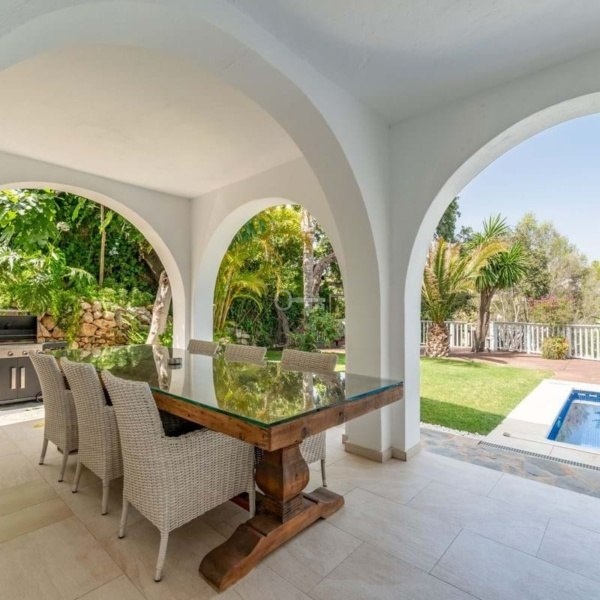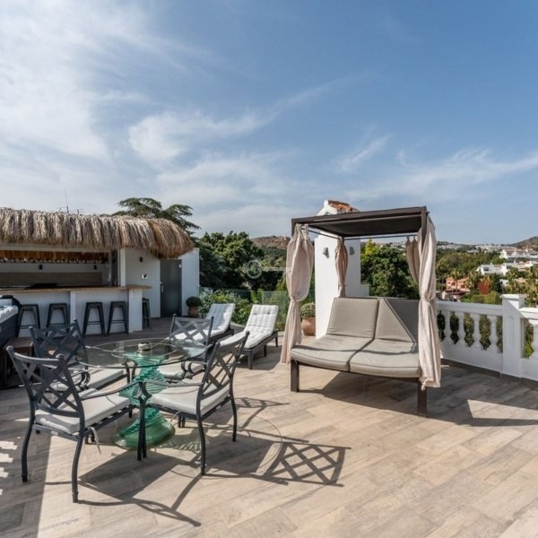 Oszałamiająca luksusowa willa położona w dolnej części Calahondy, w ekskluzywnej ślepej uliczce otoczonej willami i w bardzo cichej dzielnicy mieszkalnej, zaledwie 800 metrów od plaży, w pobliżu pięknej naturalnej zielonej okolicy Calahondy, z zapierającymi dech w piersiach panoramicznymi widokami na morze i góry. Nieruchomość znajduje się na działce o powierzchni 715 m² i oferuje 232 m² powierzchni wewnętrznej oraz taras o powierzchni 70 m², w pełni ogrodzony, wyposażony w system alarmowy i prywatny garaż. Willa posiada cztery eleganckie sypialnie z łóżkami typu king-size i łazienkami, marmurowe podłogi w całym domu, okna i drzwi z podwójnymi szybami PCV, które zapewniają wyjątkowe naturalne światło w każdym pomieszczeniu. Meble zostały starannie dobrane i wyróżniają się wyrafinowanym stylem i wysoką jakością. Istnieją dwie jadalnie wewnątrz i na zewnątrz, idealne do rozrywki. Na zewnątrz znajduje się duży podgrzewany basen z drewnianymi tarasami, leżakami, strefą relaksu i otwartymi widokami, które zachęcają do absolutnego relaksu. Na dachu przestronne solarium oferuje w pełni wyposażony bar, miejsce do grillowania, jacuzzi i stołki barowe idealne do podziwiania niezapomnianych zachodów słońca nad morzem. Dodatkowo willa posiada licencję na wynajem turystyczny i jest z powodzeniem wynajmowana przez większość roku, co czyni ją doskonałą inwestycją o dużym potencjale wynajmu. Wyjątkowa nieruchomość, która łączy w sobie luksus, komfort i uprzywilejowane naturalne otoczenie na Costa del Sol.