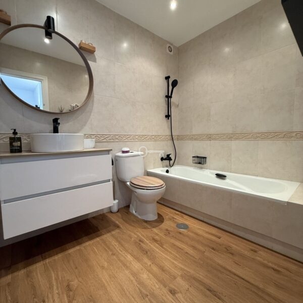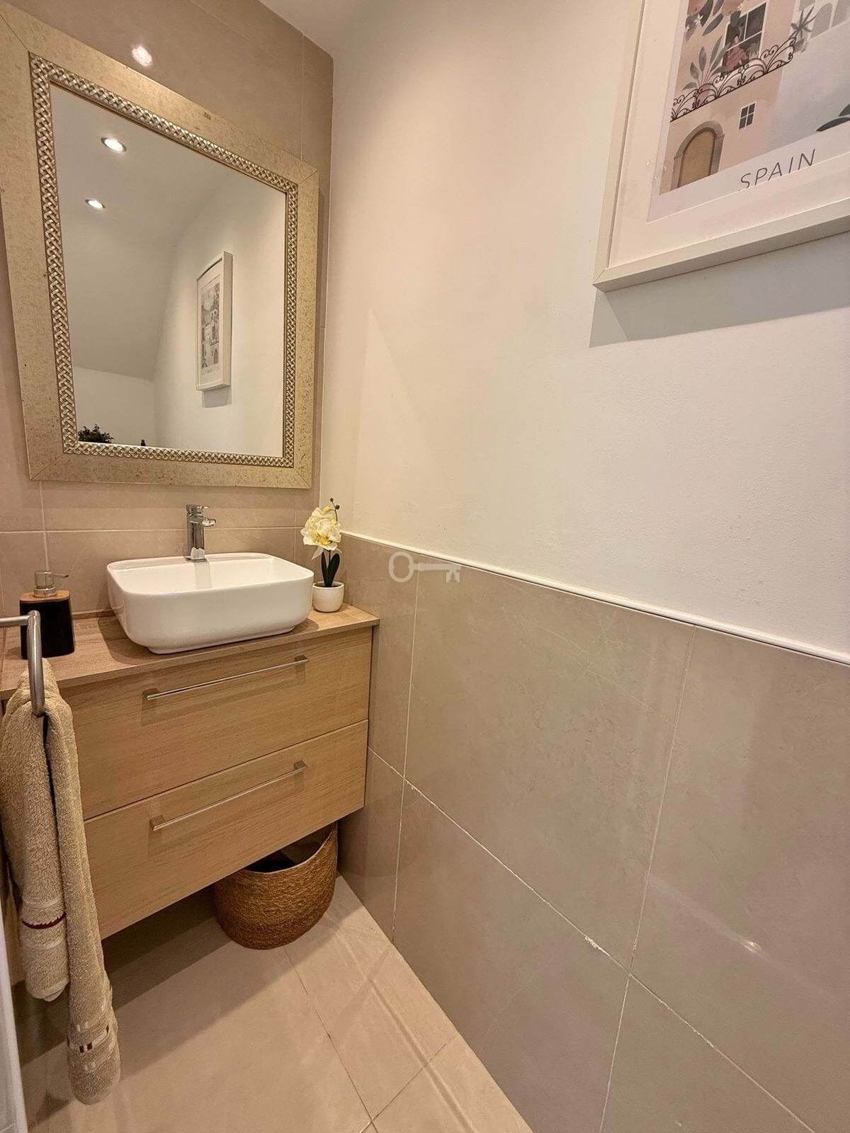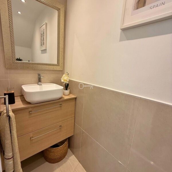 It features 2 exterior bedrooms with fitted wardrobes, with the master bedroom offering an en-suite bathroom and direct access to a private terrace. The house also includes 2 full bathrooms and a guest toilet.