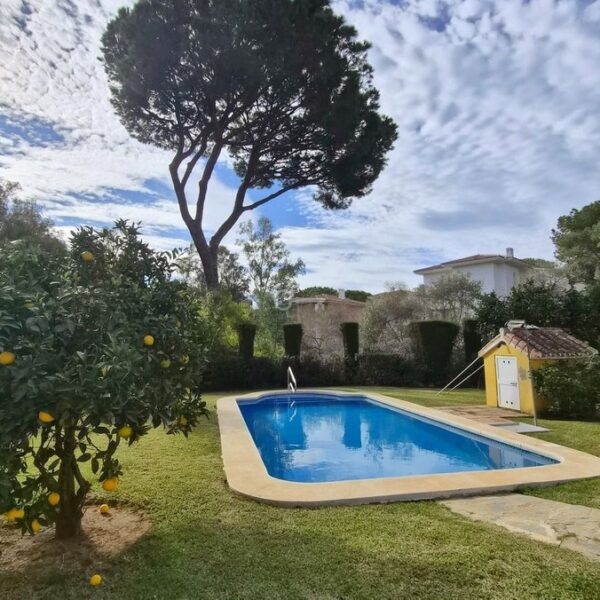 The outdoor area features a covered porch with fireplace, perfect for year-round enjoyment. From the garden there is direct access to the communal swimming pool. Additionally, the side of the property offers a private area that can be adapted to different uses.