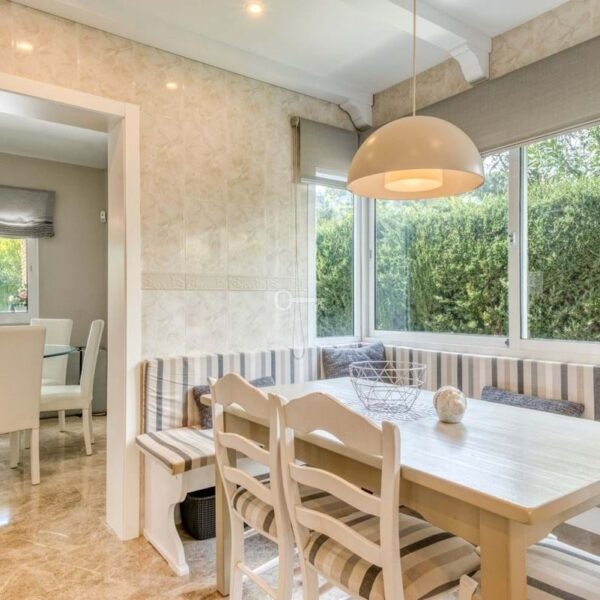 The main living level features an entrance hall leading into a bright living and dining area with large windows opening onto garden terraces. The kitchen is positioned beside the living space and offers good potential for upgrading, while a guest bathroom completes this level. Upstairs, there are four well-proportioned bedrooms and two bathrooms, with the principal rooms enjoying pleasant views over the surrounding greenery. A private terrace provides a relaxing space to enjoy the Costa del Sol climate. The lower level includes a spacious basement with garage and storage areas, offering flexibility for additional living space such as a gym, cinema room or guest accommodation if desired.