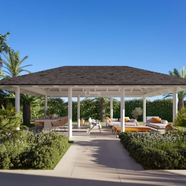 Wyjątkowa willa położona w prestiżowym kurorcie Finca Cortesin, której ukończenie zaplanowano na lato 2025 roku. Wyróżnia ją urzekająca architektura z unikalnym trójkątnym dachem z ciemnymi dachówkami, które pięknie kontrastują z białymi ścianami zewnętrznymi. Położona na przestronnej działce willa oferuje zapierające dech w piersiach widoki na pole golfowe Finca Cortesin. Starannie wypielęgnowane ogrody zapewniają czarujące tło i dużo miejsca na zewnątrz do zabawy i cieszenia się słońcem. Imponujący basen bez krawędzi zachęca do relaksu podczas podziwiania okolicznych widoków, a zintegrowana altana jest idealna do siedzenia na świeżym powietrzu i spożywania posiłków na świeżym powietrzu. Obszerne tarasy zewnętrzne zaspokoją potrzeby tych, którzy cenią sobie czas spędzony na świeżym powietrzu. Wnętrza emanują elegancją i wyrafinowaniem, z neutralną paletą kolorów i gustownymi akcentami dekoracyjnymi. Wysokie sufity zwiększają poczucie przestronności i tworzą przewiewną atmosferę. Część dzienna płynnie łączy się z kuchnią i jadalnią na otwartym planie, ułatwiając płynny przepływ między przestrzeniami mieszkalnymi. Poziom parteru bez wysiłku łączy się z poziomem ogrodu, zacierając granice między życiem wewnątrz i na zewnątrz. Z czterema sypialniami, z których każda ma swój własny charakter i harmonijnie łączy się ze stylem nieruchomości. Trzy sypialnie znajdują się na głównym poziomie, podczas gdy na najwyższym piętrze znajduje się sypialnia z prywatnym balkonem i wspaniałymi widokami.