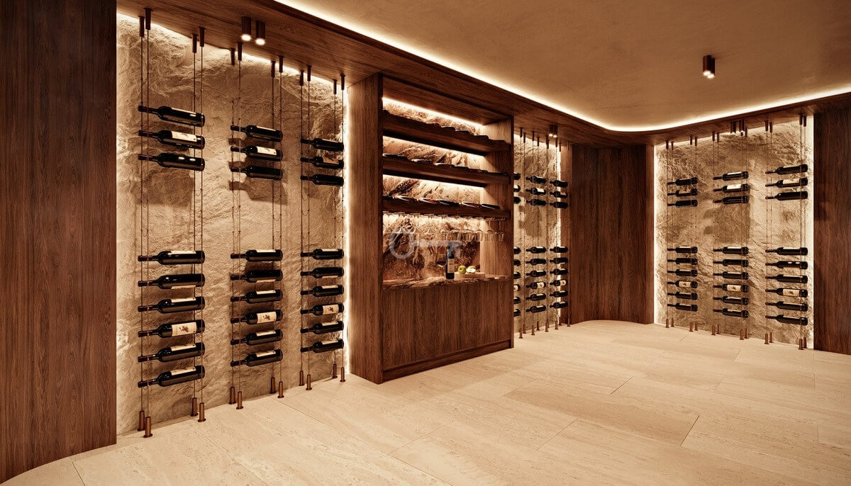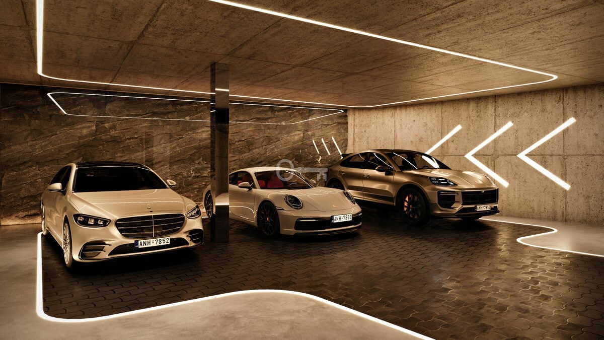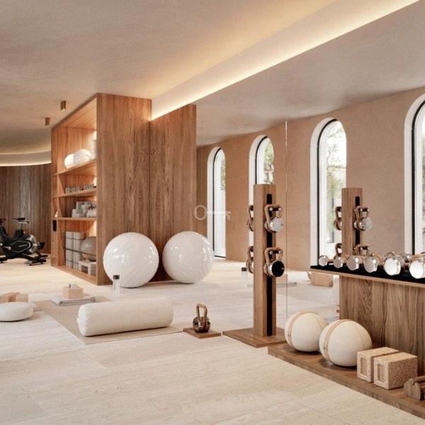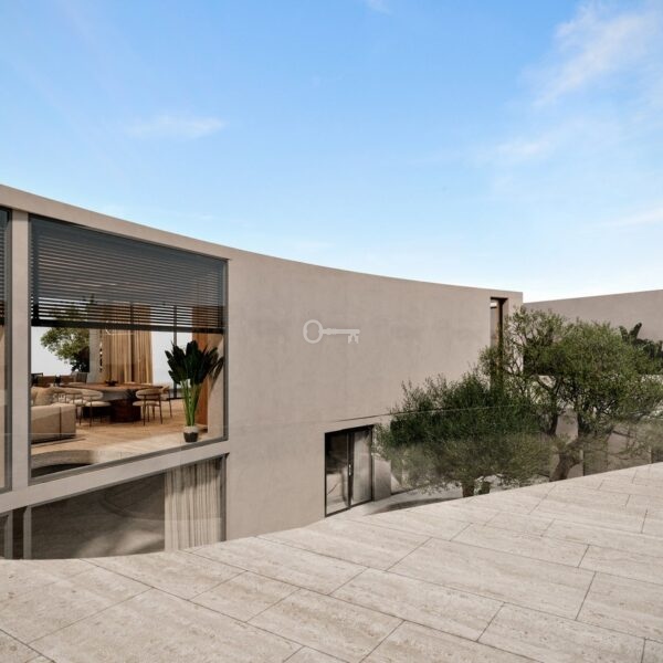 Rozłożony na trzech piętrach dom oferuje wszystko, czego można oczekiwać od wymarzonej willi nad morzem. Obejmuje cztery sypialnie z łazienkami, dodatkowy pokój dla personelu, siedem łazienek, piwniczkę z winami, spa, siłownię, kino i przestronny salon z otwartą kuchnią. Duże szklane drzwi przesuwne zapewniają płynne przejście między życiem wewnątrz i na zewnątrz, z bezpośrednim dostępem do panoramicznego tarasu i basenu bez krawędzi.