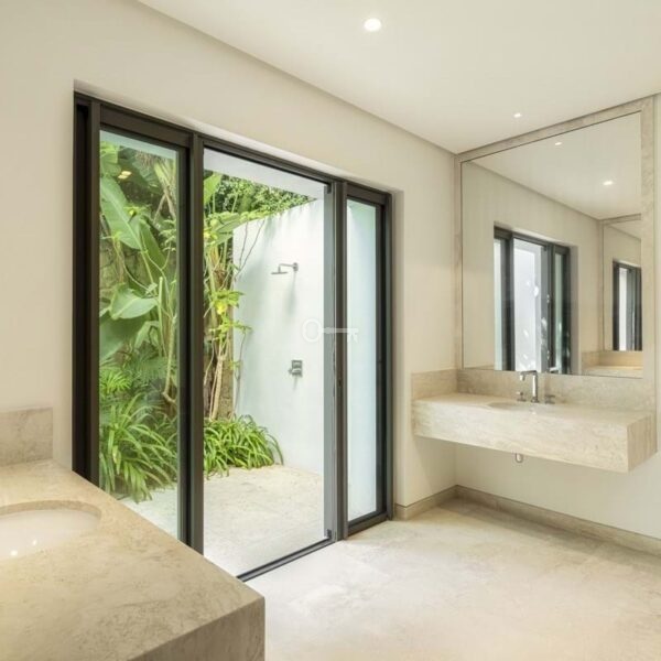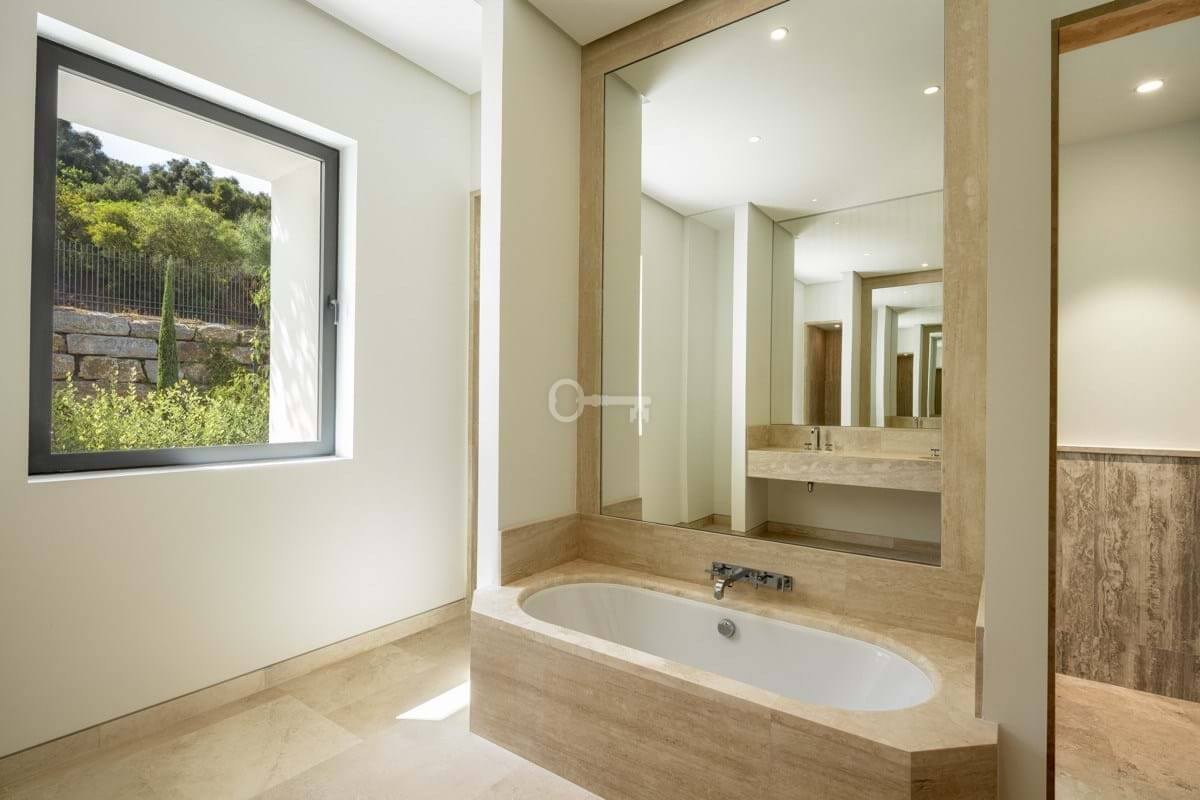 Willa oferuje dwie sypialnie dla gości na parterze, zapewniające bezpośredni dostęp do ogrodu, podczas gdy pozostałe sypialnie znajdują się na górnym poziomie. Urzekający chodnik łączy pokoje, służąc jako wewnętrzny balkon z widokiem na część dzienną, ze świetlikami wypełniającymi przestrzeń naturalnym światłem. Każda sypialnia ma dostęp do ogrodu na górnym poziomie, który otacza nieruchomość, wraz z prywatną łazienką. Bogata sypialnia główna, o dużych rozmiarach i starannie zaprojektowana, oferuje nieskazitelne widoki, które dodają jej uroku.