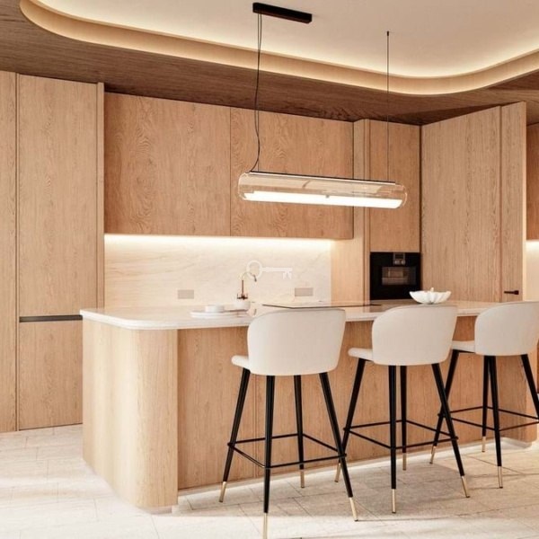 Wnętrze wyróżnia się układem na otwartym planie, który płynnie łączy różne pokoje. Jasny i przestronny salon z 5-metrowymi sufitami połączony jest z nowoczesną, designerską kuchnią wyposażoną w najnowocześniejsze urządzenia i centralną wyspę.
