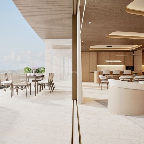 Przestronne i luksusowe przestrzenie zewnętrzne zostały zaprojektowane z myślą o maksymalnej przyjemności. Kilka tarasów rozciąga się na całej długości nieruchomości, zapewniając idealne miejsca do spożywania posiłków na świeżym powietrzu lub relaksu podczas podziwiania spektakularnego otoczenia. Na prywatnym tarasie znajduje się basen bez krawędzi, w tym przytulna jaskinia z zewnętrznym kominkiem.
