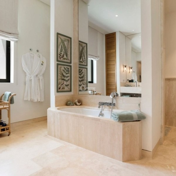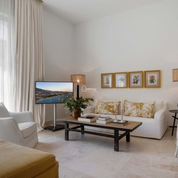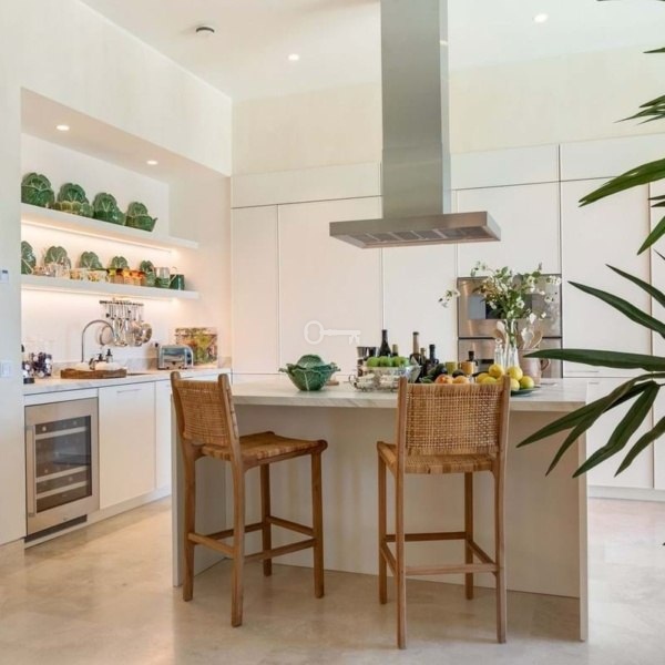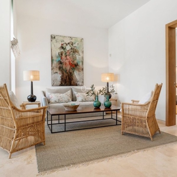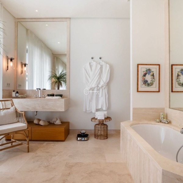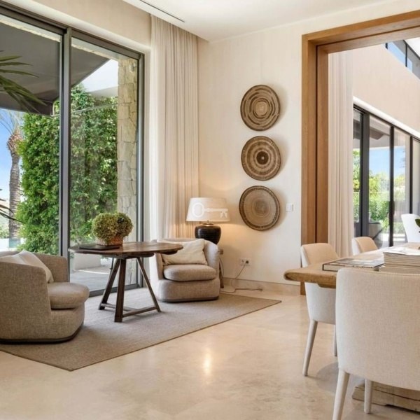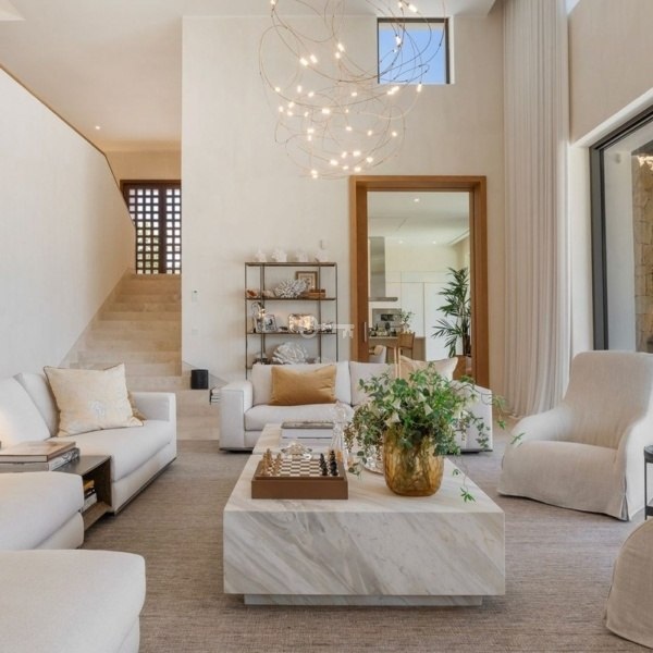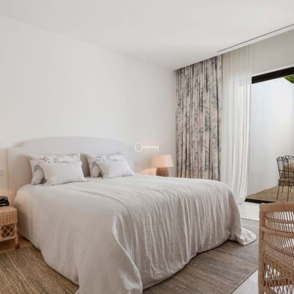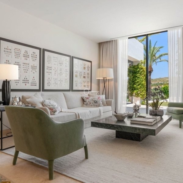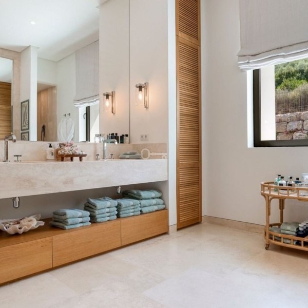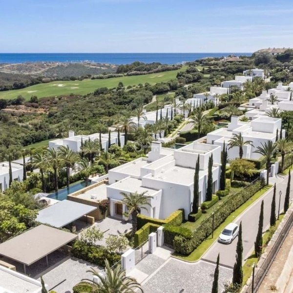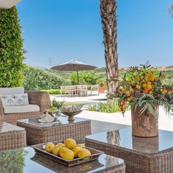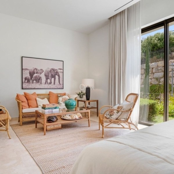 Willa w stylu Ibizy położona na terenie ośrodka Finca Cortesin. Położona na dużej działce z ogrodami krajobrazowymi, nieruchomość oferuje panoramiczne widoki na pole golfowe i okoliczne góry. Willa jest rozmieszczona na dwóch poziomach i ma czystą białą fasadę ze śródziemnomorskimi akcentami z kamienia.