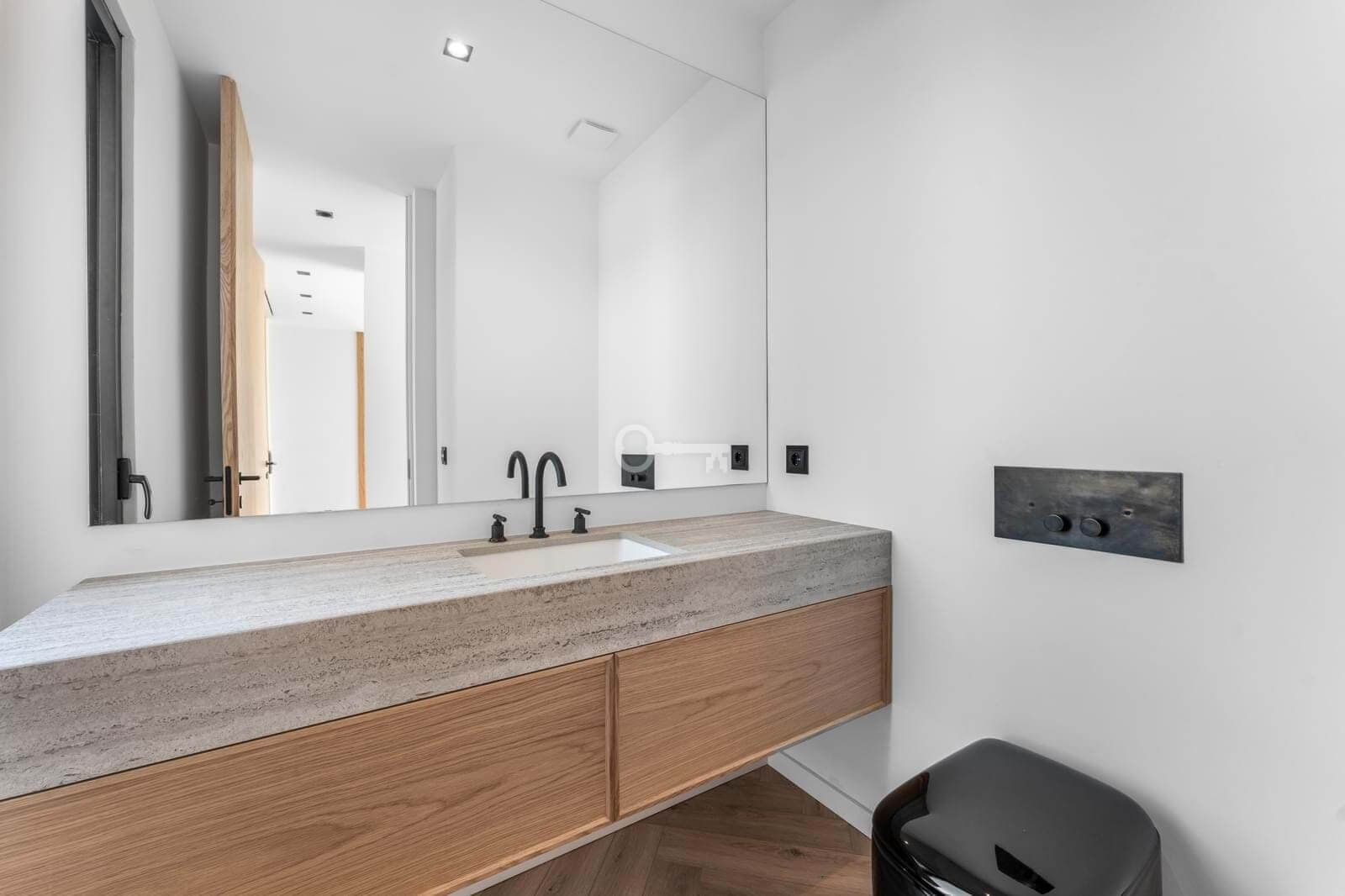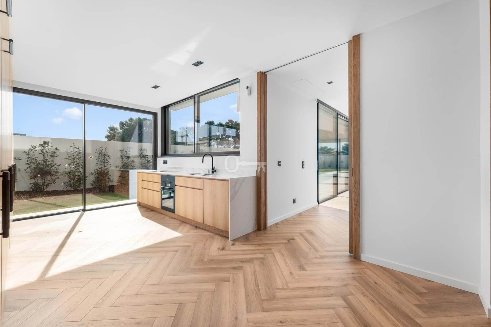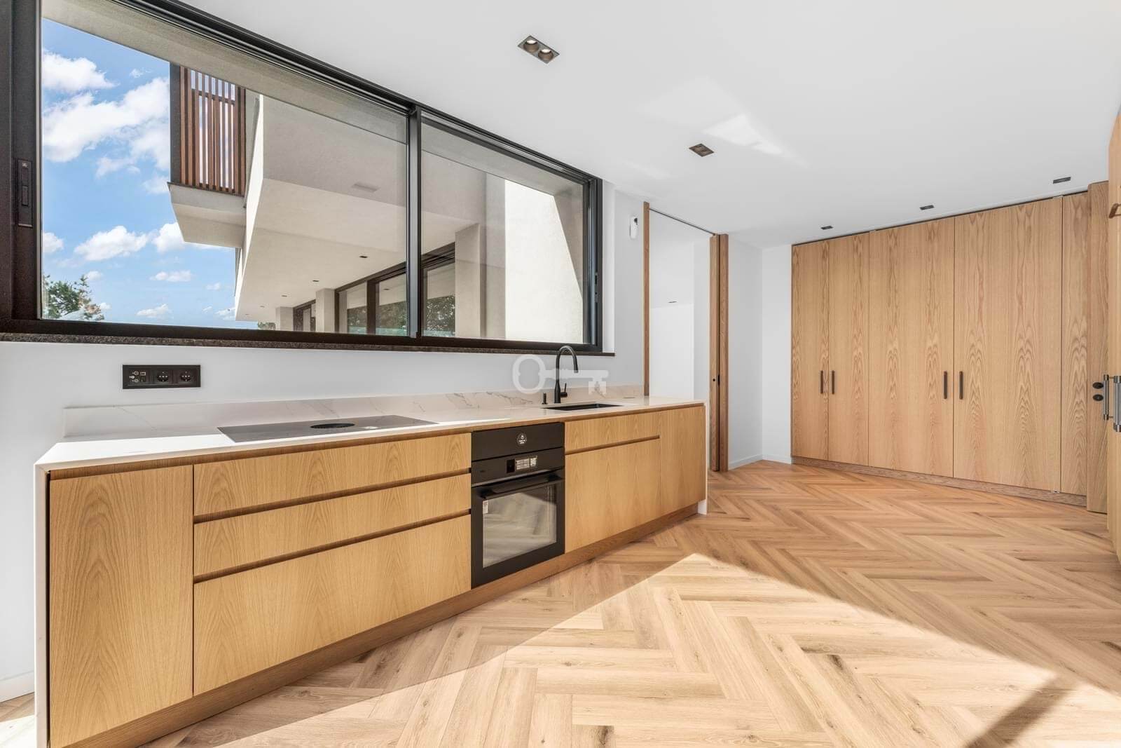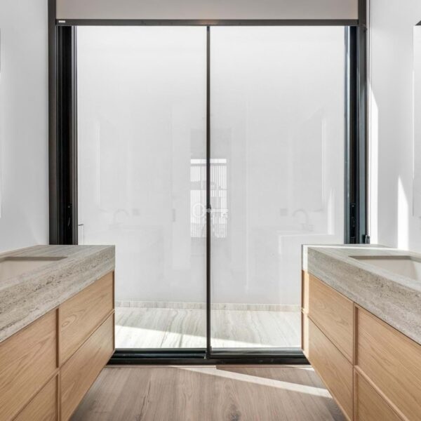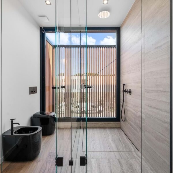 With a total gross construction area of 608 sqm distributed over three levels, this residence is distinguished by abundant natural light, elegant architectural lines, and the seamless integration of interior and exterior spaces. Serviced by an elevator, the villa offers a generous open-plan social area on the ground floor, where floor-to-ceiling glass doors provide direct access to the landscaped garden and natural-stone pool. The fully equipped kitchenfeaturing SMEG appliances, climate-controlled wine storage, and a warming drawercompletes this sophisticated living environment.