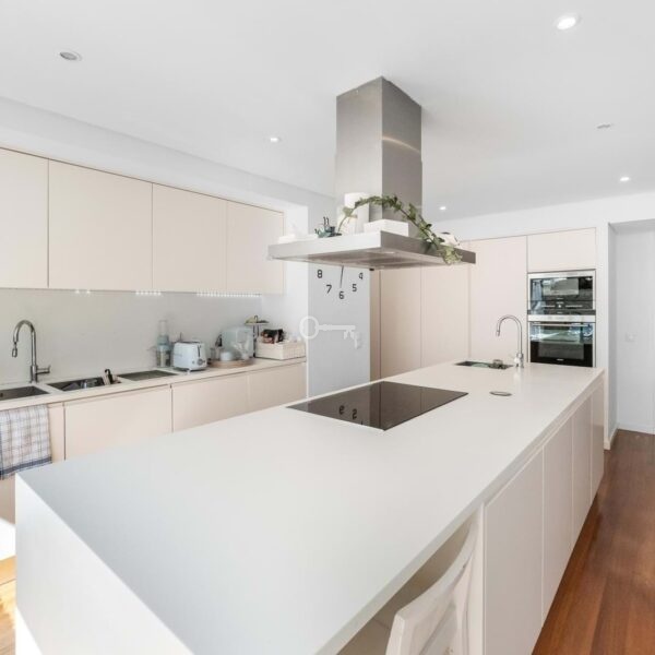 – Kitchen equipped with Siemens appliances, three sinks, and a sliding door connecting to the dining room