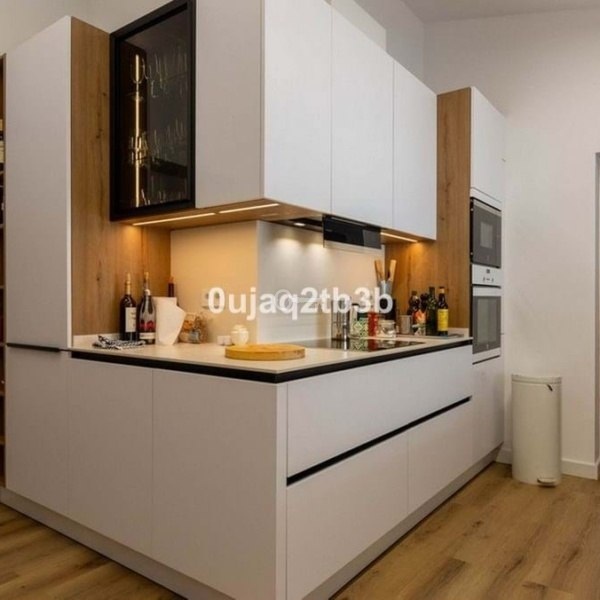 Jasna, w pełni wyposażona kuchnia, która otwiera się na jadalnię i oddzielne pomieszczenie gospodarcze / biurowe.