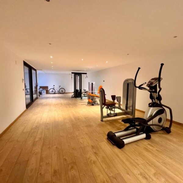 The basement level includes a private gym and another full bathroom, offering a perfect space for wellness and exercise.