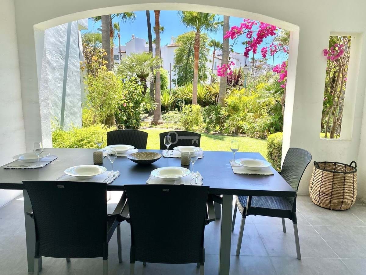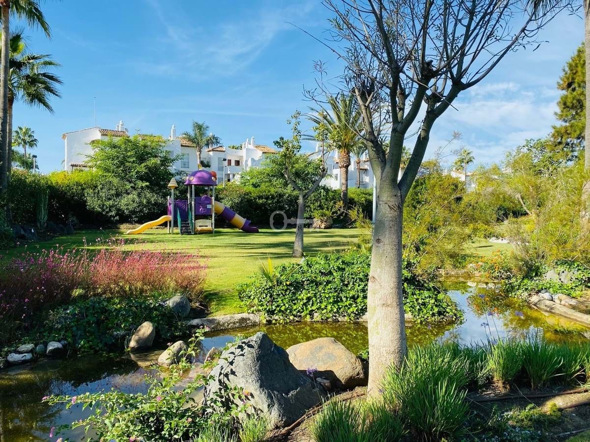 Na parterze znajduje się jasna i przestronna część dzienna, która obejmuje wygodny salon z kominkiem, przestronną jadalnię oraz w pełni wyposażoną kuchnię na otwartym planie. Ten poziom oferuje również toaletę dla gości dla dodatkowej wygody. Dwa tarasy, jeden z przodu i jeden z tyłu, a także prywatny ogród zapewniają mnóstwo przestrzeni na świeżym powietrzu. Z ogrodu jest bezpośredni dostęp do dużego wspólnego basenu na terenie rezydencji.