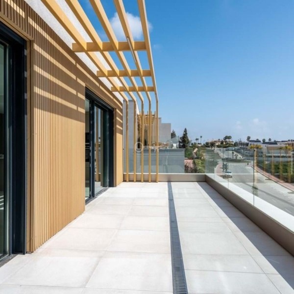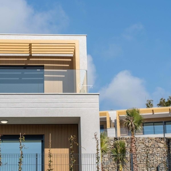 Ten dom został zaprojektowany tak, aby zrównoważyć styl z komfortem. Otwarte przestrzenie wspólne i przestronne wnętrza zostały zaprojektowane tak, aby zalać przestrzeń naturalnym światłem, zapewniając niesamowicie zachęcające wrażenia z życia. W rozległym salonie znajdują się duże okna z obrazami i wysokiej jakości porcelanowe płytki podłogowe, tworząc bez wysiłku jasne i przewiewne środowisko, które maksymalizuje światło dzienne przez cały dzień. Przestronny taras oferuje panoramiczne widoki na morze – idealne miejsce na relaks i podziwianie zapierających dech w piersiach zachodów słońca. Kuchnia płynnie przechodzi w część dzienną, przyczyniając się do otwartej, świeżej atmosfery, która jest idealna do relaksującego, codziennego życia. Najwyższej klasy wykończenia, w tym blaty kwarcowe, zintegrowane urządzenia i nastrojowe oświetlenie LED, dodatkowo podnoszą przestrzeń, dodając wyrafinowania i ciepła. W łazienkach wielkoformatowe płytki porcelanowe emanują elegancją, podkreślając dbałość o szczegóły i zaangażowanie w projektowanie wysokiej jakości.