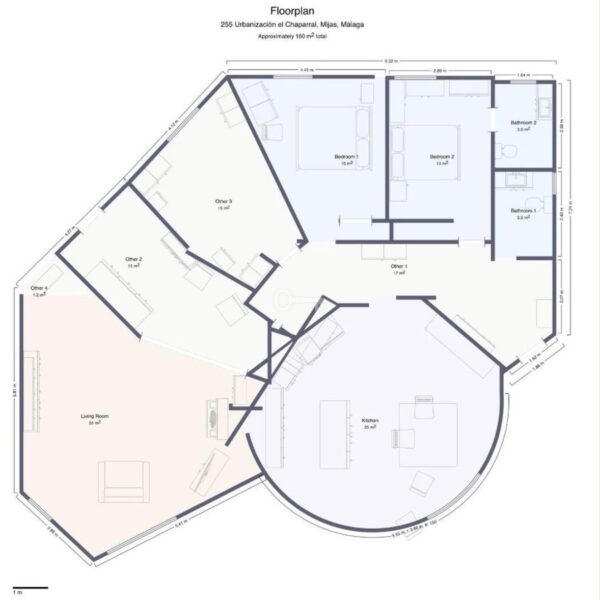 Położona na przestronnej działce o powierzchni 1,099 m², nieruchomość oferuje 280 m² powierzchni wewnętrznej plus 48 m² tarasów, inteligentnie rozmieszczonych w dwóch oddzielnych skrzydłach dla maksymalnej funkcjonalności i komfortu. Posiada 4 przestronne sypialnie, 3 w pełni wyposażone łazienki i toaletę dla gości, dzięki czemu idealnie nadaje się jako miejsce stałego zamieszkania lub luksusowy dom wakacyjny.