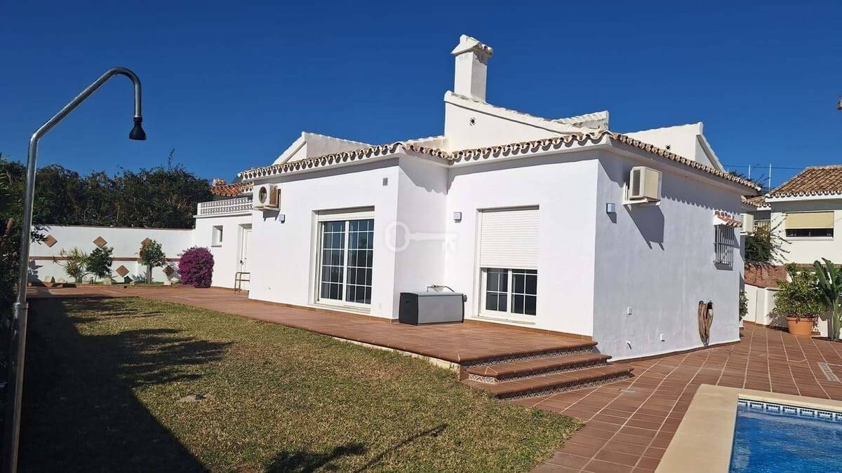 Urocza jednopoziomowa willa / bungalow z 3 sypialniami i 2 łazienkami z widokiem na morze | El Chaparral, Mijas Costa, Costa Del Sol.