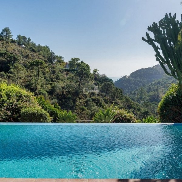 Na zewnątrz willa naprawdę błyszczy. Rozległy taras rozciąga się na starannie zagospodarowany ogród, który otacza basen bez krawędzi, oferując spokojną ucieczkę z niezrównanymi widokami. Bujna zieleń i przestronny taras stanowią idealne miejsce na relaks, rozrywkę lub po prostu rozkoszowanie się pięknem Costa del Sol.