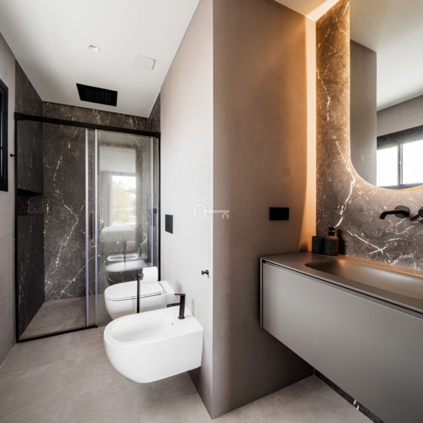 – Instalacja klimatyzacji (Mitsubishi lub Samsung), w tym jednostki zewnętrzne i wewnętrzne Stolarka aluminiowa (drzwi zewnętrzne i okna) z przekładkami termicznymi, matowym czarnym wykończeniem i systemami zamykania