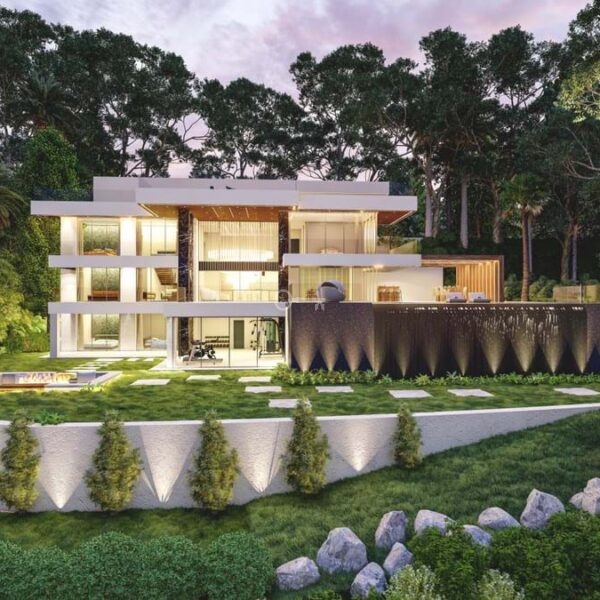 Ten wyjątkowy projekt znajduje się w MADRONAL, w otoczeniu luksusowych willi. Działka oferuje niezakłócony widok na morze. Wszyscy sąsiedzi zapewniają spokój.