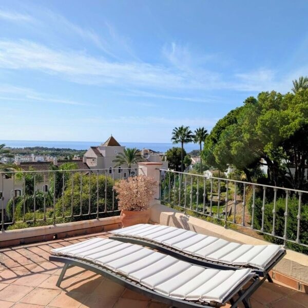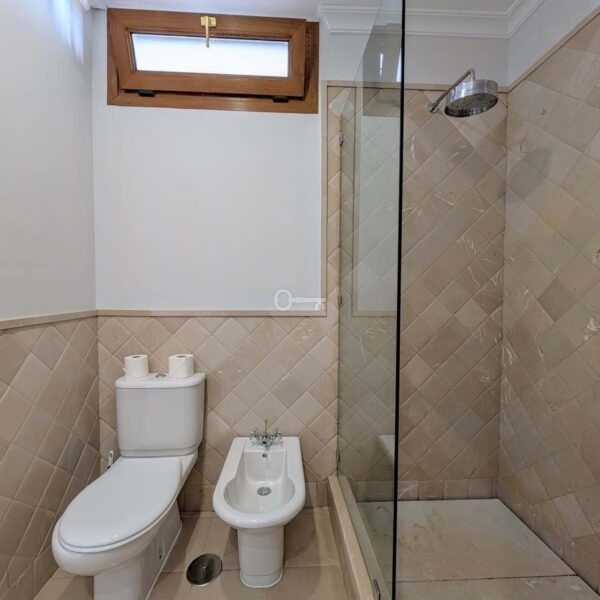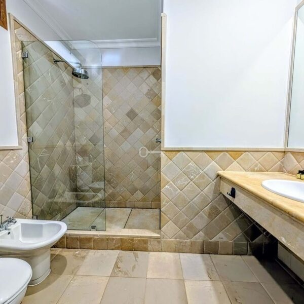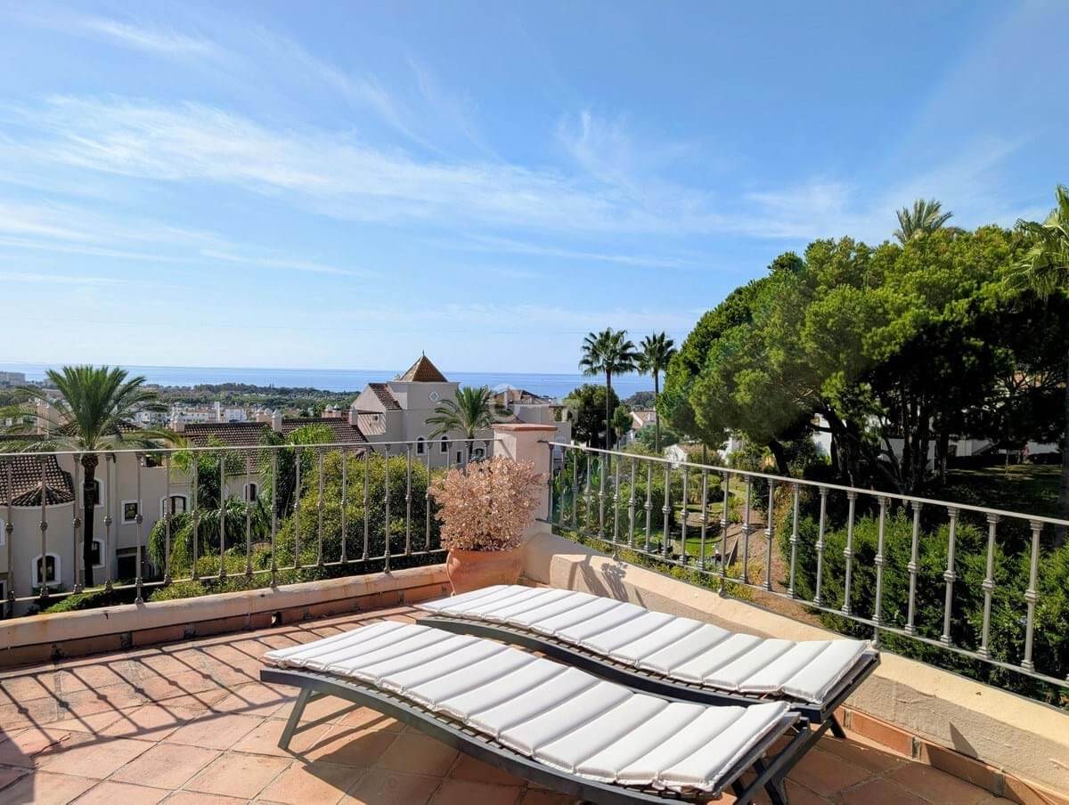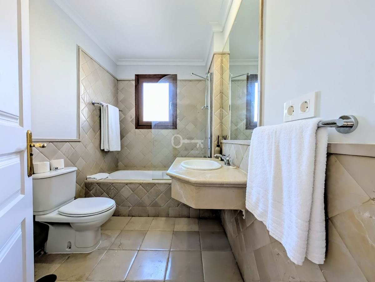 Po schodach znajduje się hol dystrybucyjny prowadzący do dużej sypialni głównej z łazienką i dwóch dużych sypialni gościnnych dzielących rodzinną łazienkę. Wszystkie sypialnie mają dostęp do tarasów, wyposażone są w szafy i niezależne termostaty do klimatyzacji.