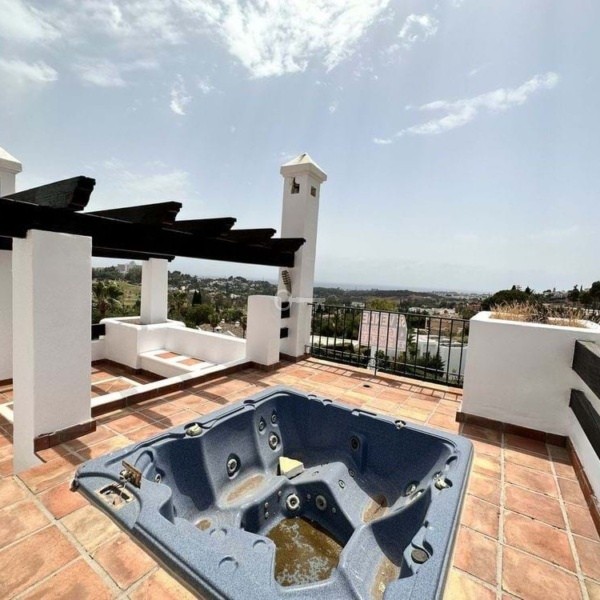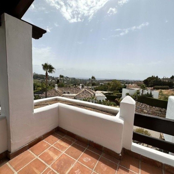Oszałamiający narożny dom w zabudowie bliźniaczej znajduje się tuż nad prestiżowym klubem golfowym El Paraíso, oferując wspaniałe widoki na Morze Śródziemne i pole golfowe.