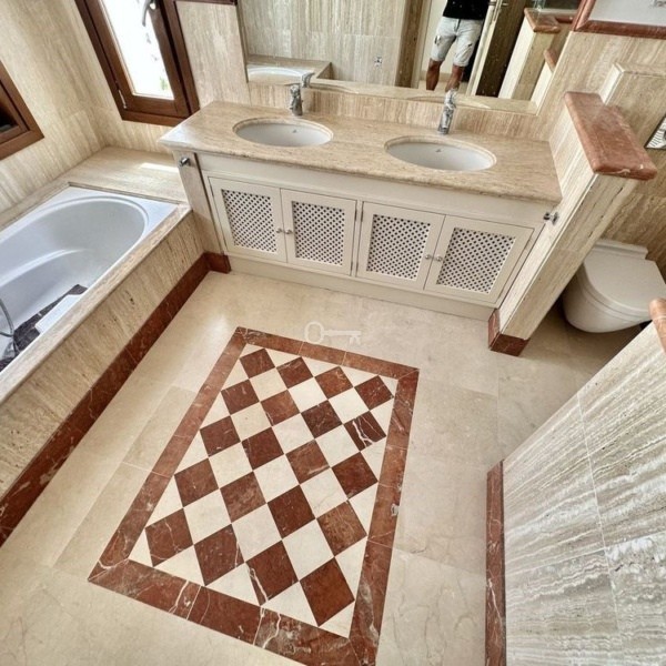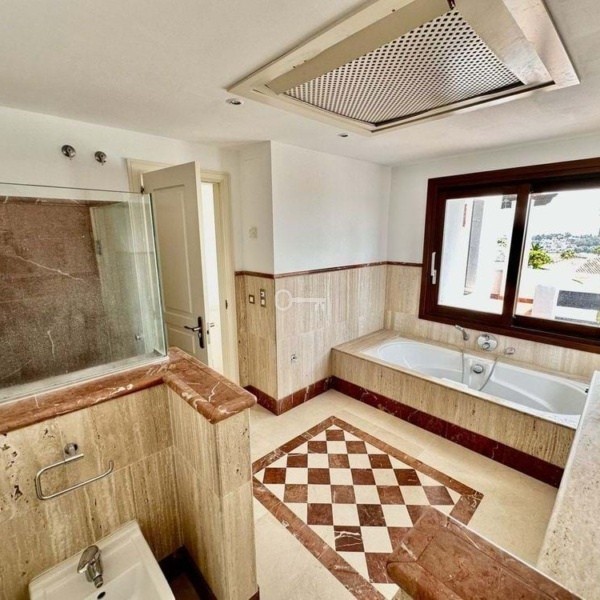 Po wejściu do nieruchomości znajduje się przestronny salon i taras z widokiem na morze i pole golfowe, będziesz miał dużo miejsca na relaks i odpoczynek. Jest on podzielony na cztery duże sypialnie, trzy łazienki, toaletę. W sumie są trzy piętra plus solarium, miejsce na grilla, jacuzzi, z bezpośrednim dostępem do wspólnego ogrodu z basenem.