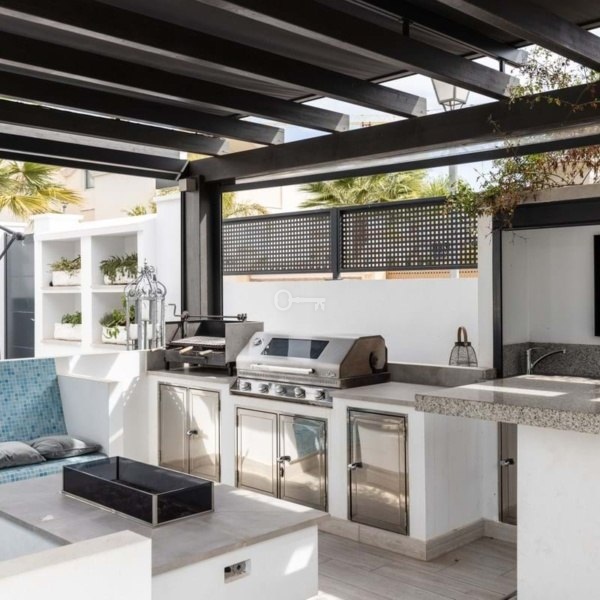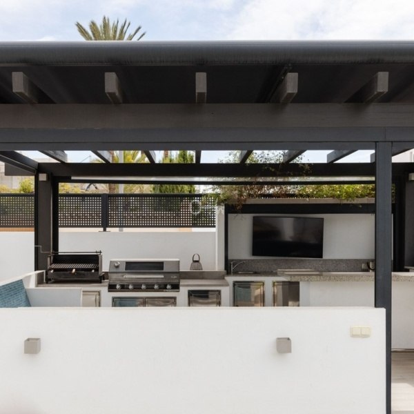 Życie na świeżym powietrzu jest niezrównane, z obszerną częścią rozrywkową z najnowocześniejszą kuchnią i barem. Wyposażona w grille gazowe i na węgiel drzewny, telewizor z płaskim ekranem i przytulne ognisko, ta wyrafinowana przestrzeń została zaprojektowana na wszystkie pory roku. Pomysłowo, obszar ten można całkowicie zamknąć, aby zapewnić komfort przez cały rok.