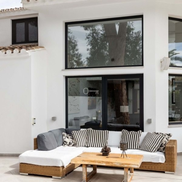 Skrupulatnie odnowiona z bezkompromisową dbałością o szczegóły willa emanuje ponadczasową elegancją i nowoczesną funkcjonalnością. Na głównym piętrze znajduje się jasny salon o podwójnej wysokości ze strzelistymi oknami sięgającymi od podłogi do sufitu, płynnie łączącymi się z częściowo zadaszonym tarasem. Obok znajduje się w pełni wyposażona kuchnia z uroczym kącikiem śniadaniowym, któremu towarzyszy wygodny dostęp do pralni i pomieszczeń gospodarczych. Na tym poziomie znajdują się trzy starannie zaprojektowane sypialnie, dwie ze wspólną łazienką i jedna z łazienką.