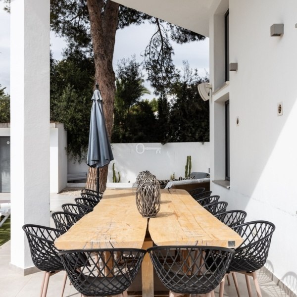 Ta znakomicie odnowiona willa cieszy się godną pozazdroszczenia lokalizacją zaledwie 180 metrów od dziewiczych piaszczystych wybrzeży Las Chapas Playa. Oferuje pięć wystawnych sypialni i cztery nienagannie urządzone łazienki, znajduje się na rozległej działce od strony południowo-zachodniej, a wszelkie udogodnienia i obiekty rekreacyjne znajdują się w odległości krótkiego spaceru.