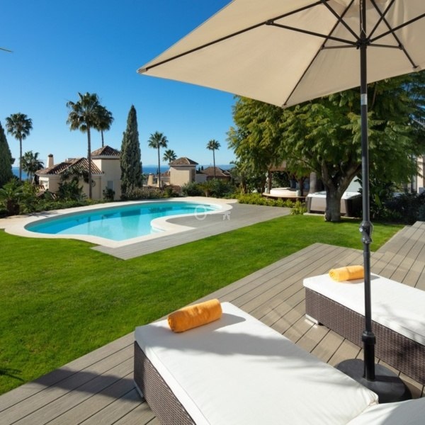 Życie na świeżym powietrzu jest główną atrakcją tej willi, z prywatnym basenem z podgrzewaną wodą i starannie utrzymanym prywatnym ogrodem. Liczne tarasy, zarówno zadaszone, jak i odkryte, oferują wszechstronne przestrzenie do relaksu lub rozrywki, z urzekającymi widokami na ogród, basen i Morze Śródziemne. Położenie nieruchomości wzdłuż pola golfowego dodatkowo zwiększa jej atrakcyjność, zapewniając spokojne zielone widoki i poczucie ekskluzywności.