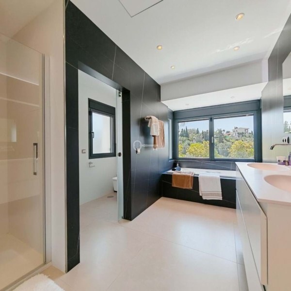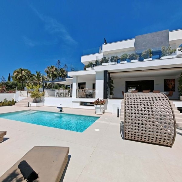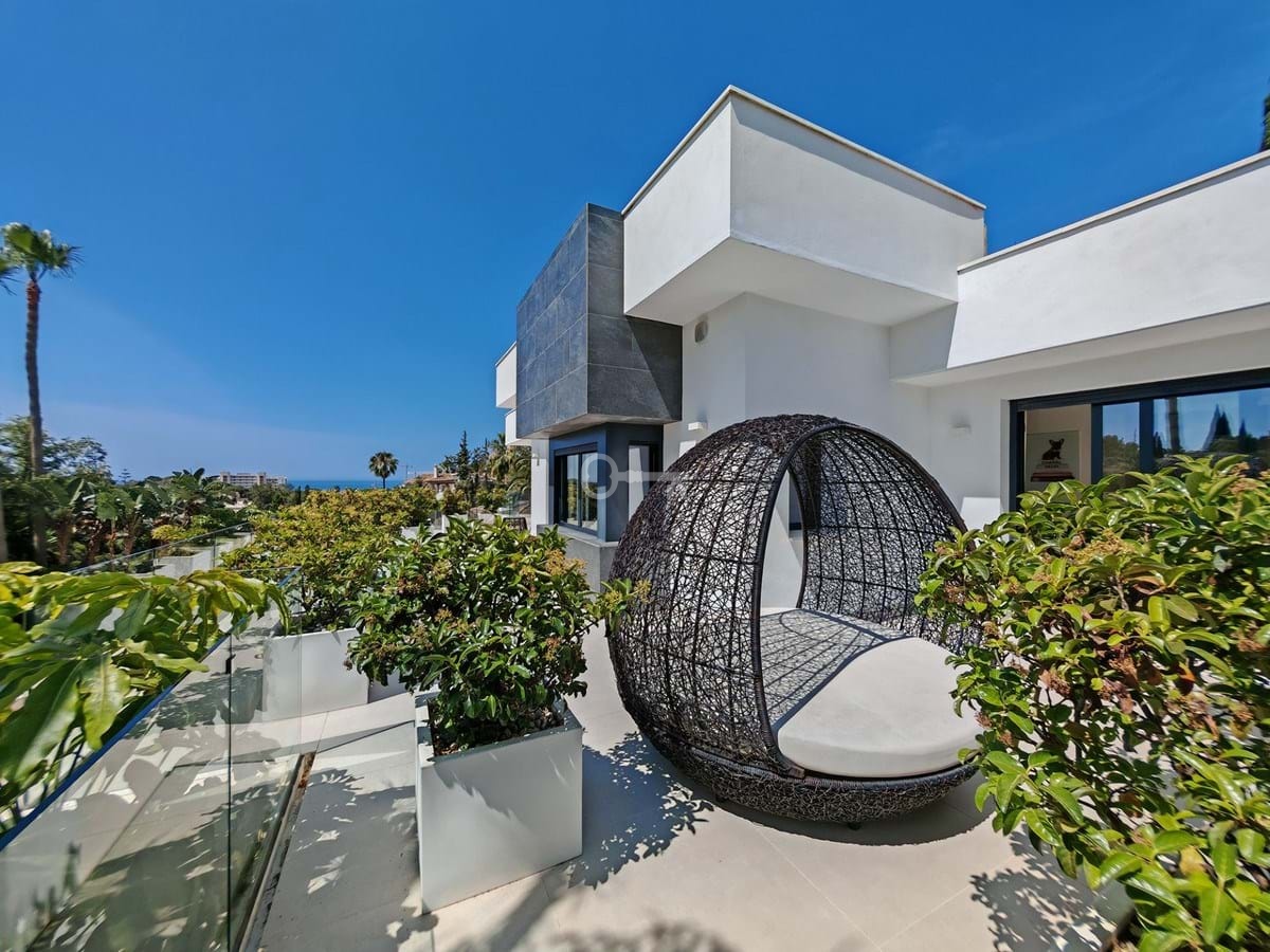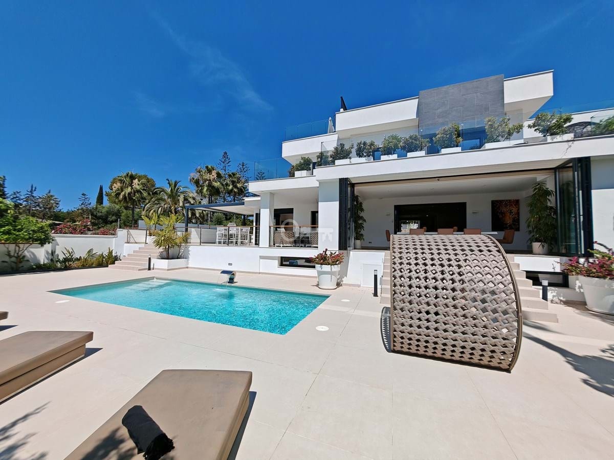 Willa na sprzedaż w El Rosario, Marbella z 4 sypialniami, 6 łazienkami i orientacją południowo-wschodnią, z prywatnym basenem, garażem (3 miejsca parkingowe) i prywatnym ogrodem. Jeśli chodzi o wymiary nieruchomości, ma ona 737 m² zabudowy, 1,436 m² działki i 223 m² tarasu. Posiada następujące udogodnienia: udogodnienia w pobliżu, transport w pobliżu, klimatyzacja, w pełni wyposażona kuchnia, telewizja satelitarna, piwnica, siłownia, alarm, solarium, podwójne szyby, jadalnia, grill, toaleta dla gości, prywatny taras, salon, widok na morze, podgrzewany basen, ogrzewanie podłogowe (w całym budynku), rolety antywłamaniowe, zadaszony taras, elektryczne żaluzje, wbudowane szafy, widok na ogród, widok na basen, sala kinowa, nieumeblowane, blisko morza / plaży, blisko golfa, odkryty taras, szklane drzwi, balkon, doskonały stan, basen ze słoną wodą, blisko sklepów, blisko miasta i blisko szkół.