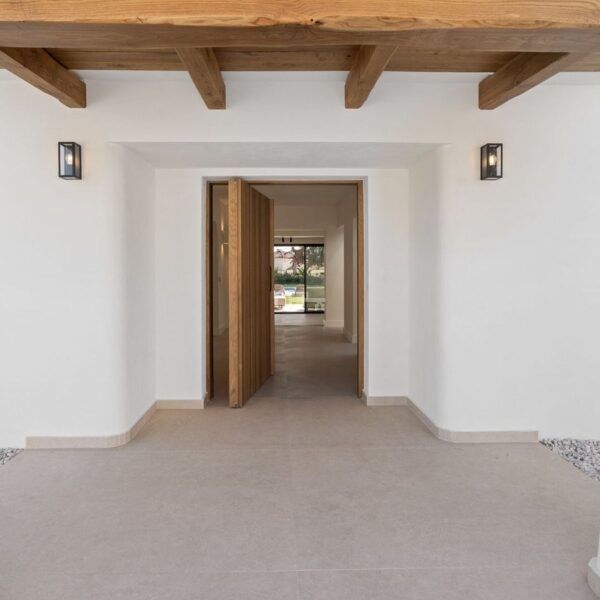 Na zewnątrz rozległy płaski ogród oferuje spokojne sanktuarium idealne do relaksu, rozrywki lub kąpieli. Zewnętrzna strefa grillowania podkreśla śródziemnomorski styl życia, zapraszając do spożywania posiłków na świeżym powietrzu pod słońcem lub gwiazdami.