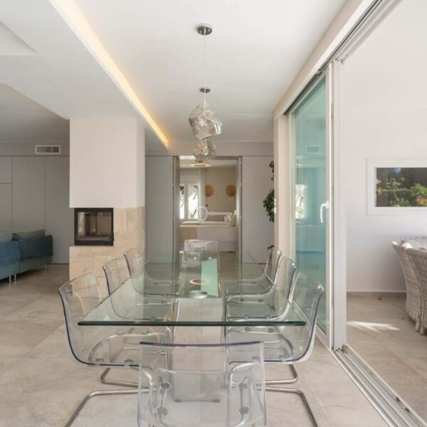 Główna przestrzeń mieszkalna otwiera się bezpośrednio na ogród i basen, tworząc płynny styl życia wewnątrz i na zewnątrz. W pełni wyposażona współczesna kuchnia obejmuje oddzielną spiżarnię/szulernię, zapewniając doskonałą praktyczność do codziennego użytku, a także relaksującą rozrywkę.