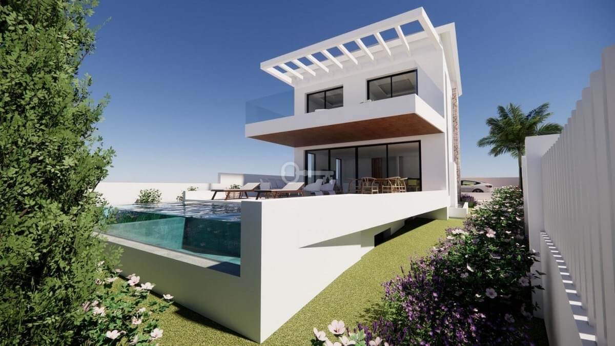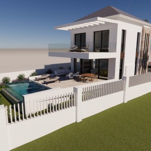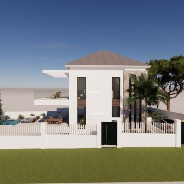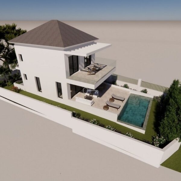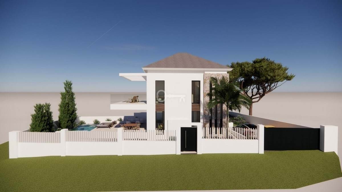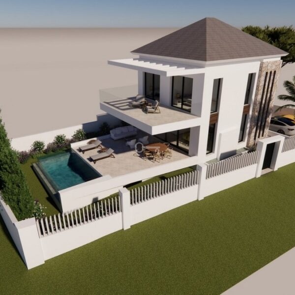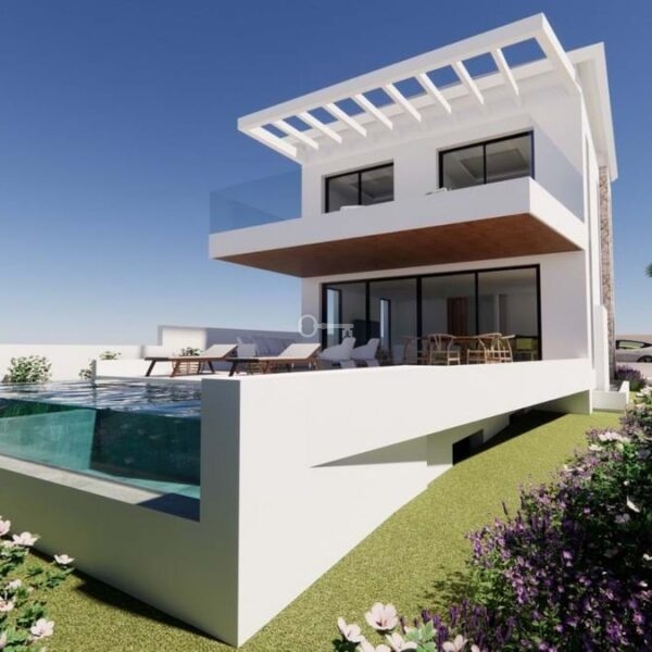 The villa comprises 380 m² built (312 m² usable) distributed across four spacious bedrooms and five bathrooms, all designed with natural light and sea views in mind. The elegant living area opens onto a covered terrace, private garden, and swimming pool, creating seamless indoor-outdoor living.
