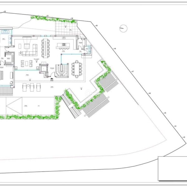 Poziom wejściowy składa się z prywatnego, samodzielnego apartamentu z 1 sypialnią, 2 sypialni dla gości z łazienkami i pomieszczenia biurowego. Znajduje się tam garaż na 4 samochody z punktem ładowania samochodów elektrycznych, 2 duże pomieszczenia magazynowe i pomieszczenie techniczne mieszczące wszystkie maszyny willi.