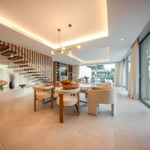 Nieruchomość jest rozmieszczona na kilku poziomach i oferuje praktyczny i wygodny układ z dobrym poziomem prywatności. Willa składa się z pięciu sypialni i sześciu łazienek, a także dodatkowego pokoju, który może służyć jako biuro lub dodatkowa sypialnia. Układ pozwala na wyraźne oddzielenie części dziennej od części sypialnej.