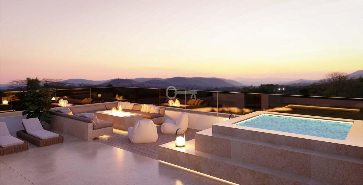 Willa posiada solarium o powierzchni ponad 200 m2, do którego można dostać się windą i schodami, z jacuzzi i zadaszonym miejscem do grillowania z panoramicznym widokiem na wybrzeże Marbelli i góry Ojén.