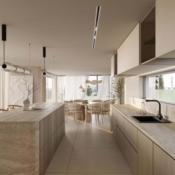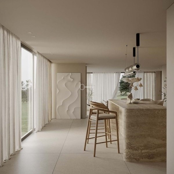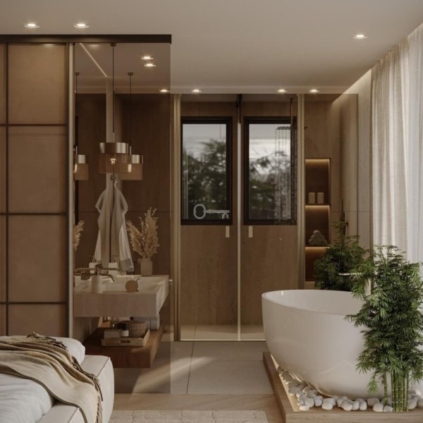 Łącząc nowoczesny skandynawski styl ze spokojną prostotą japońskiego designu, dom jest zarówno elegancki, jak i łatwy w obsłudze. Duże okna i otwarte przestrzenie wprowadzają powietrze do środka, podczas gdy przestrzeń na zewnątrz jest stworzona do cieszenia się życiem, z basenem bez krawędzi, jacuzzi i przestrzenią do relaksu lub rozrywki.