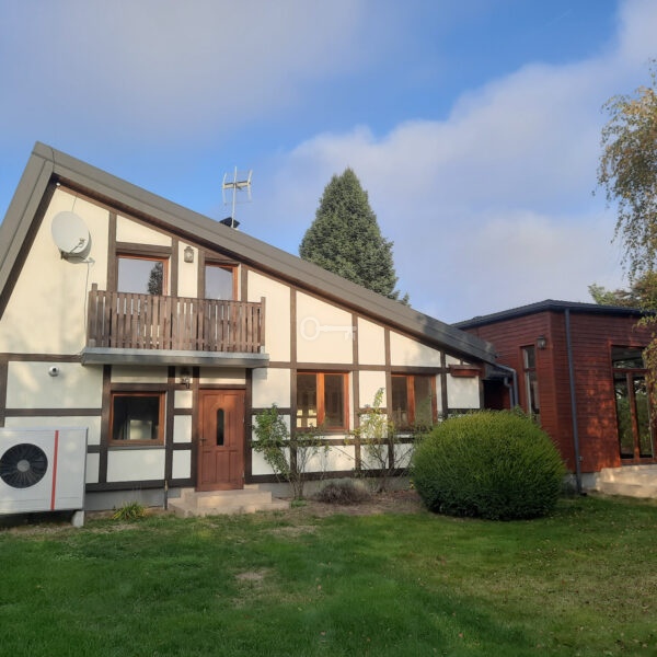 Dom powstał na solidnej bazie z lat 80. (ok. 180 m²), a następnie został objęty projektem rozbudowy, który pozwala na dalszą aranżację i dostosowanie nieruchomości do indywidualnych potrzeb przyszłych właścicieli.