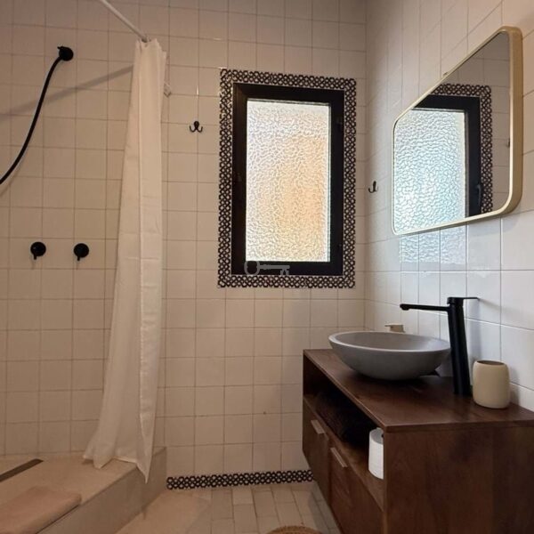Zaprojektowana, aby uchwycić esencję nadmorskiego życia, willa posiada cztery przestronne sypialnie, każda z własną łazienką, dwie na parterze i dwie na piętrze. Dodatkową wygodę zapewnia toaleta dla gości. Sercem domu jest spokojny wewnętrzny dziedziniec, sanktuarium światła i spokoju, które harmonijnie łączy wszystkie obszary mieszkalne i zachęca do cichej refleksji.