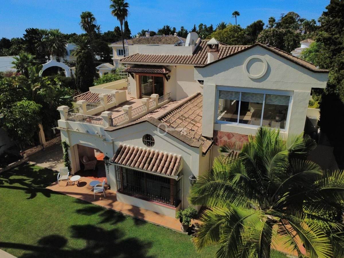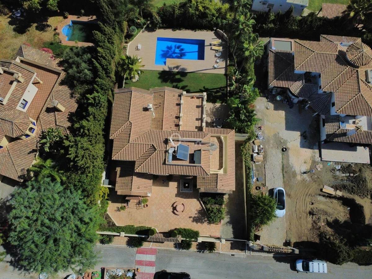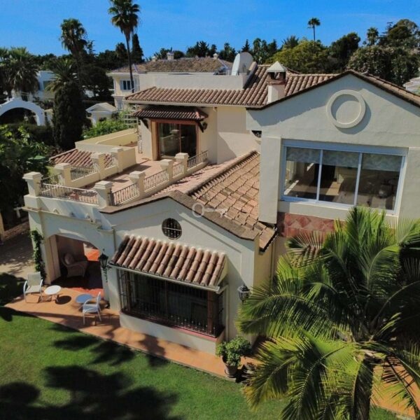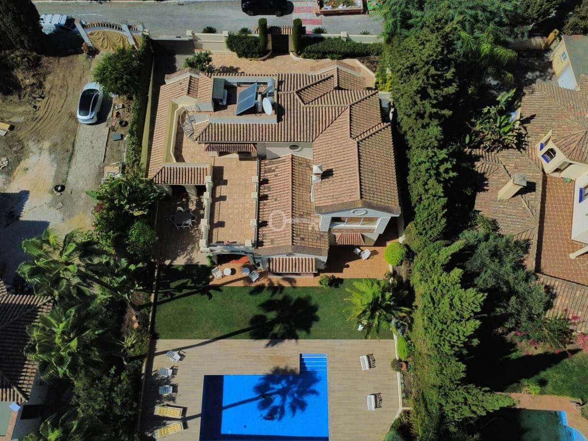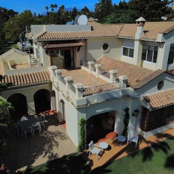 This great property has just come to the market at a very competitive price. It’s an Ideal location, walking distance to several commercial centers make it very desirable for those who don’t want to take the car to enjoy facilities and restaurants, supermarket, pharmacy, gym or a nice coffee shop. The property is in a lovely condition. The villa has a nice elegant andalusian style. The entrance hall connect to the right with the separate dining room, the fully fitted kitchen ad the large covered and uncovered terrace to the landscaped mature and very private garden and pool. The spacious living room has a high ceiling with wooden beams. On the same level we find two bedrooms with en suite bathroom. A nice stair case bring us up tot he first floor where we find a large and very bright bedroom and the master bedroom with , ensuite bathroom and access to a large very sunny uncovered terrace with lovely mountain views. Going down to the basement we find a games room, a hobby room with bathroom and the very large garage for several cars. Also the utility room. This great family property enjoys a fantastic mature garden and a lovely entrance area. International schools like Atalaya, San José in Guadalmina are just nearby. Proximity to all facilities as several golf courses like El Paraiso, Atalaya or los Flamingos, the beach at 15 minutes walk, The lovely El Campanario sport club with fantastic indoor pool, gym, spa and much more make this a unique family home. A visit is highly recommended.