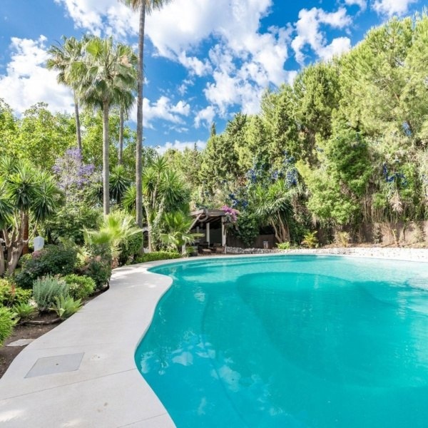 Zaprojektowana w stylu tradycyjnego hiszpańskiego Cortijo, ta doskonale utrzymana nieruchomość o powierzchni prawie 2238 m2 znajduje się na dwóch oddzielnych działkach (o łącznej powierzchni prawie 10 000 m2) z prywatnymi indywidualnymi casitas i oddzielnymi willami, rozległą przestrzenią rozrywkową na zewnątrz i wewnątrz oraz kwaterami dla personelu – wszystko otoczone dojrzałymi i zacisznymi ogrodami.