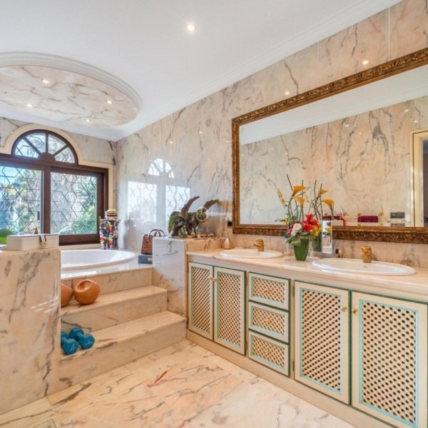 Istniejąca willa ma powierzchnię 1,098 m² i obejmuje dziewięć sypialni i sześć łazienek, rozmieszczonych w klasycznym śródziemnomorskim układzie. Rezydencja otoczona jest tętniącymi życiem ogrodami i obejmuje duży basen, prywatny kort tenisowy oraz rozległy trawnik do rozrywki na świeżym powietrzu lub spokojnych chwil relaksu.