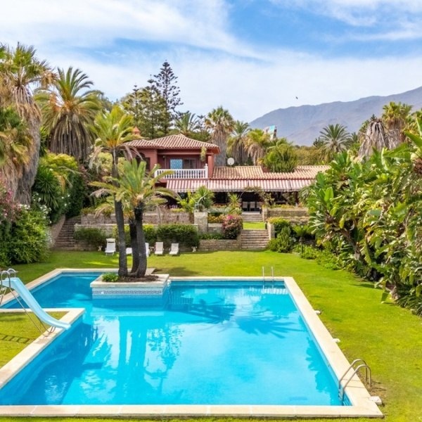 Położona na niezwykłej działce przy plaży o powierzchni ponad 7600 m², ta wspaniała posiadłość oferuje rzadką okazję do posiadania jednej z największych i najbardziej prywatnych nieruchomości na New Golden Mile. Z panoramicznym widokiem na morze, dojrzałym tropikalnym krajobrazem i bezkonkurencyjną lokalizacją zaledwie kilka minut od Estepony i jej najlepszych udogodnień, ta willa jest prawdziwym nadmorskim sanktuarium.